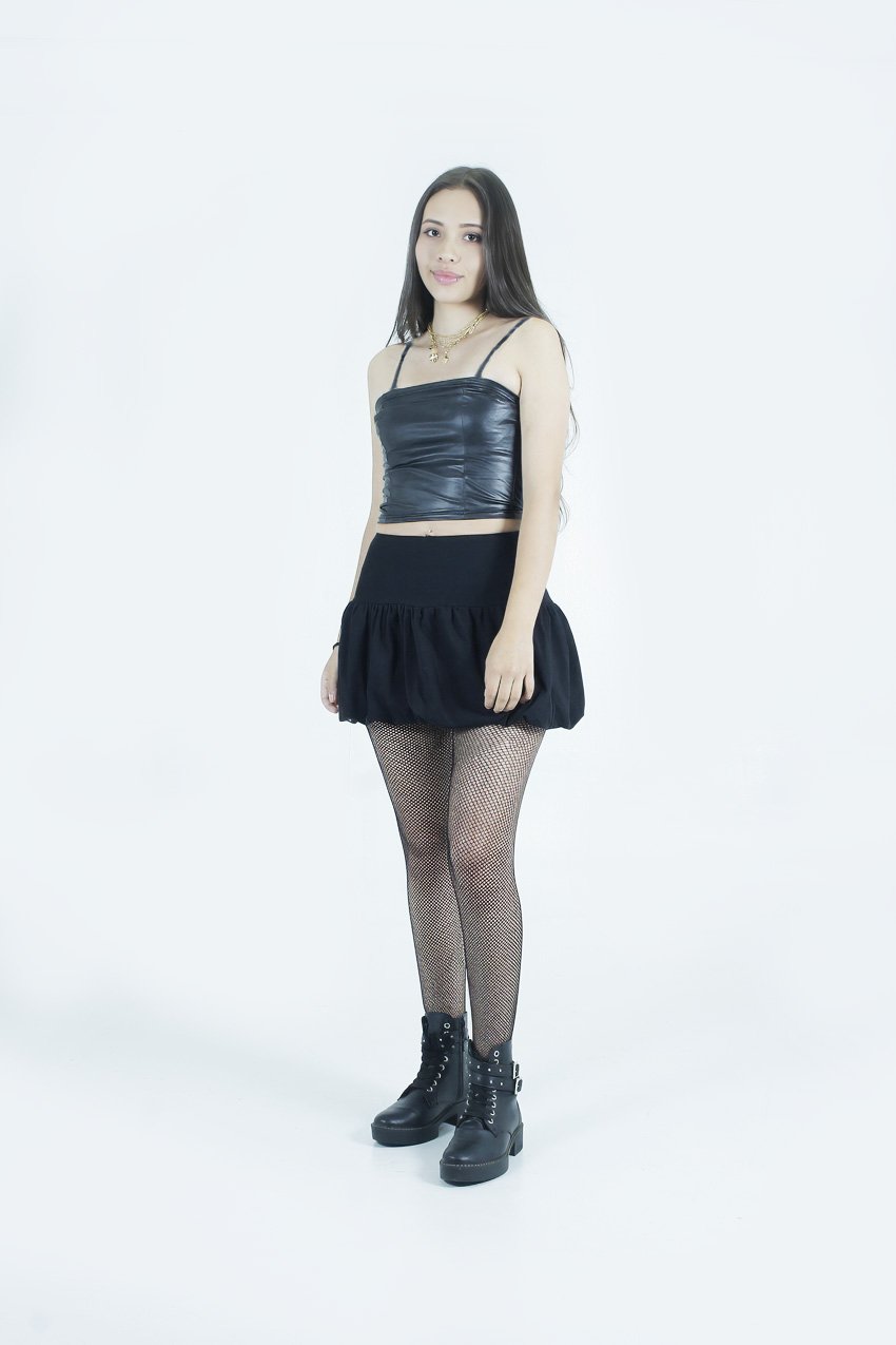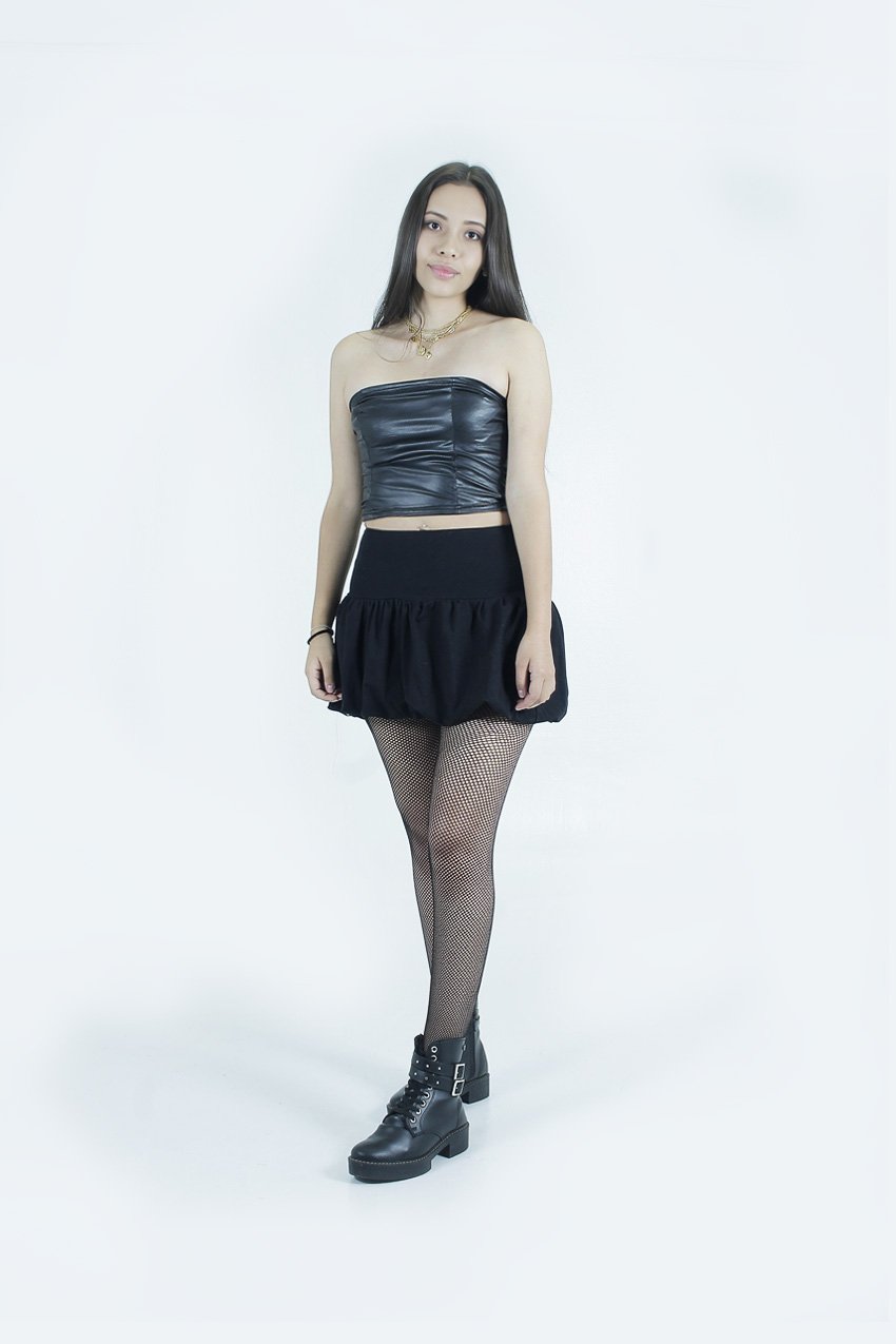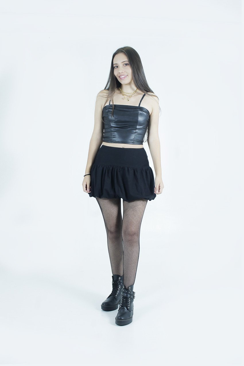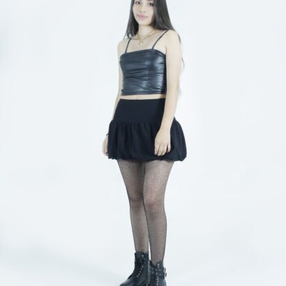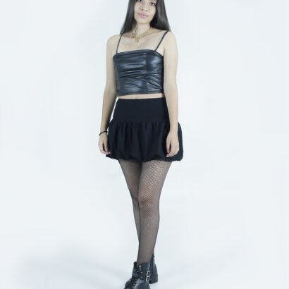 Este Crop Top de imitación cuero (cuerina) es la pieza ideal para destacar en cualquier ocasión. Su diseño moderno con tiras ajustables y corte elegante crea una silueta estilizada y audaz, perfecta para combinar con faldas, pantalones de tiro alto o jeans.